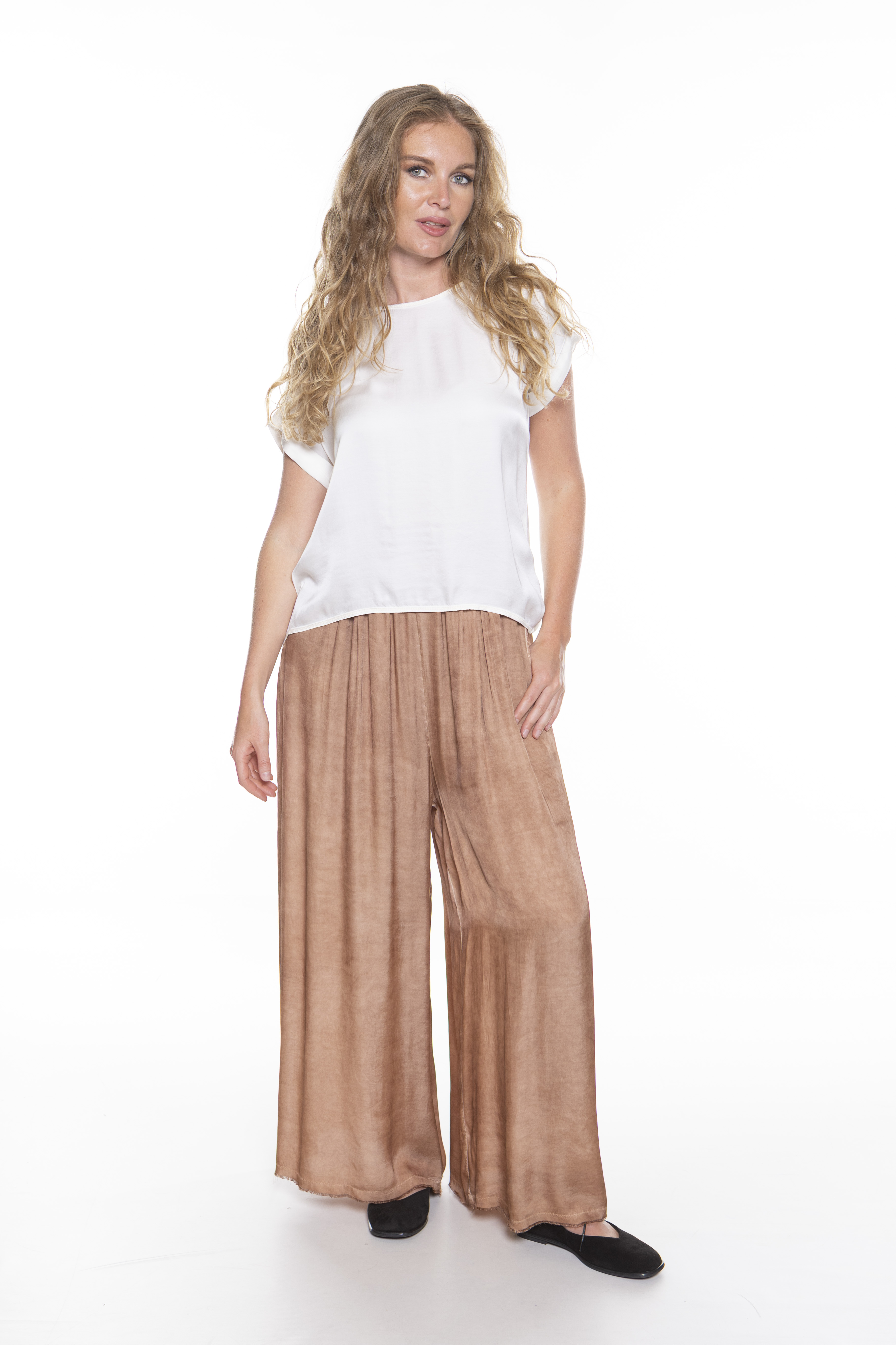 Свободный силуэт не сковывает движения, а эластичный пояс обеспечивает удобную посадку. Брюки легко комбинируются с базовыми топами, рубашками и жакетами, создавая как расслабленные, так и более элегантные образы.