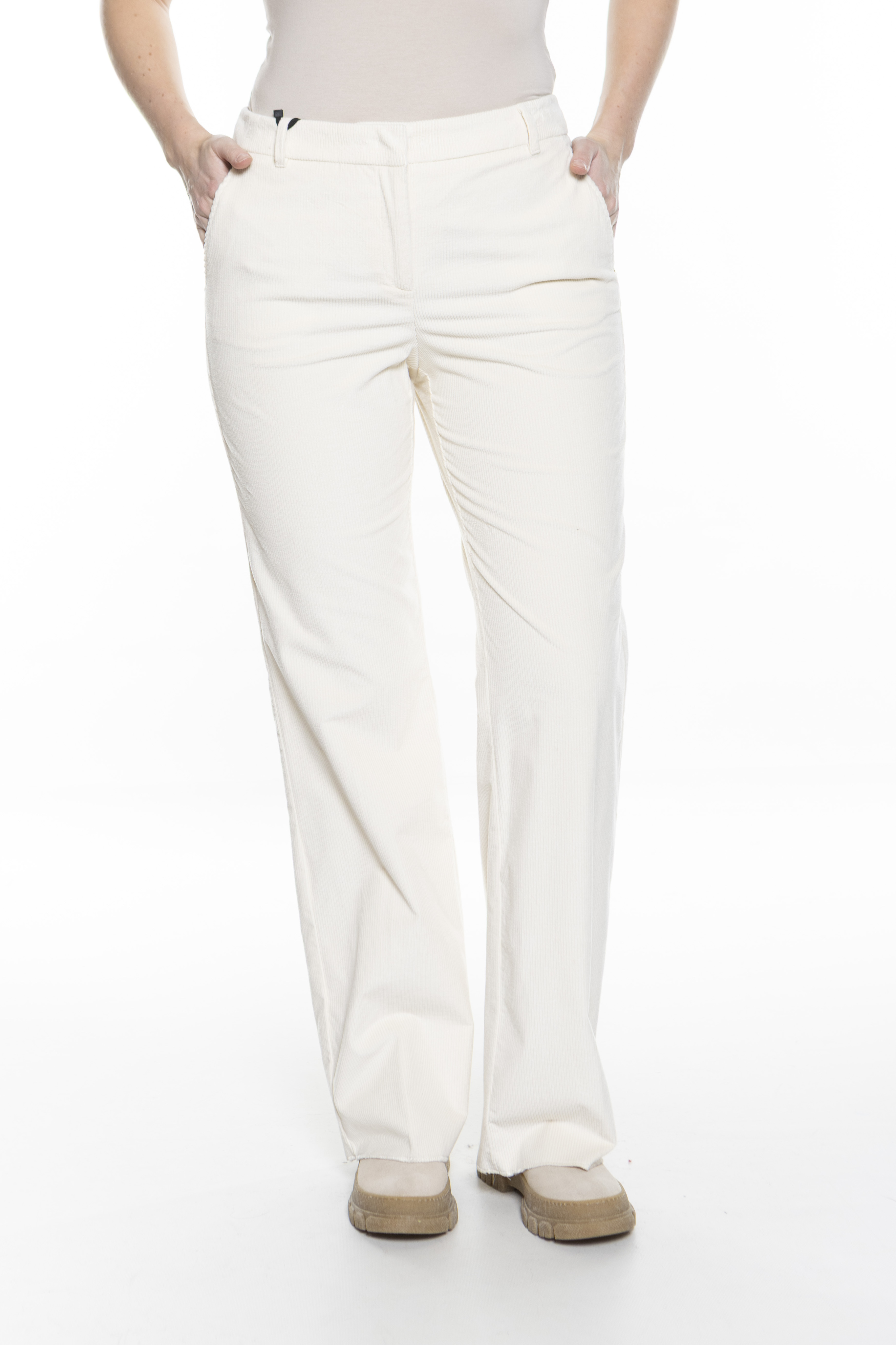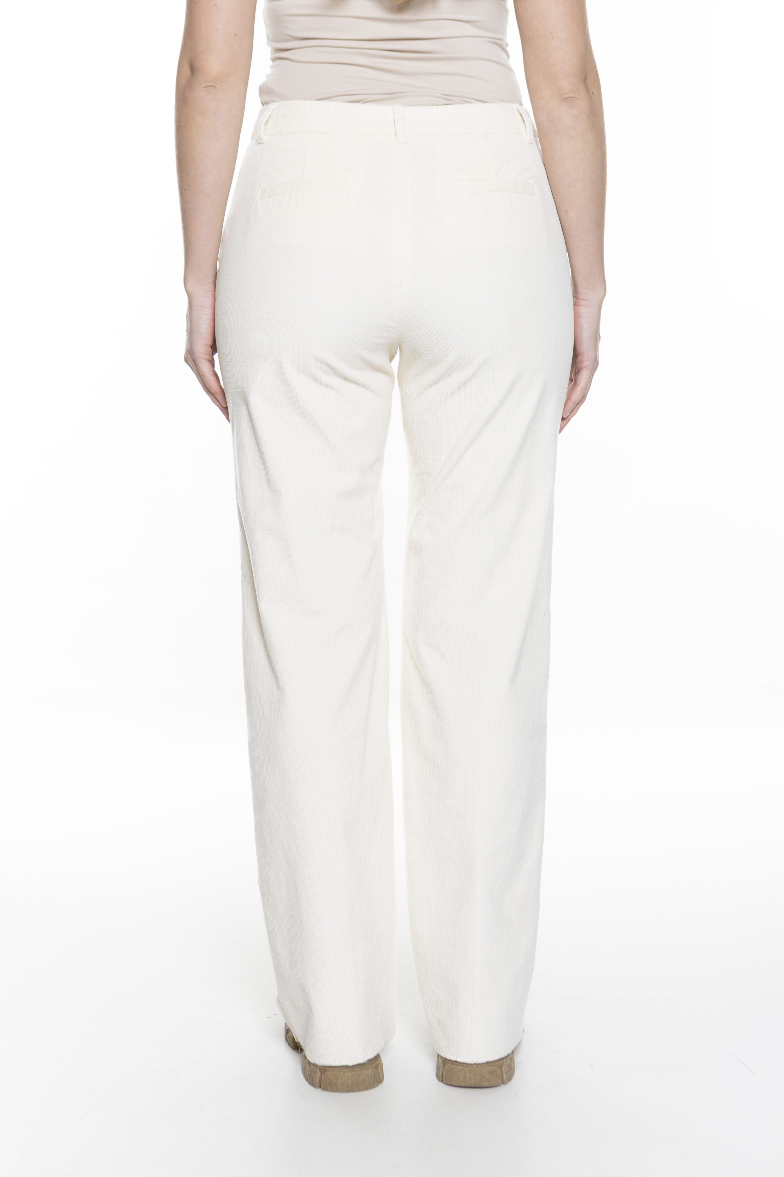 Модель представляет собой брюки из эластичного хлопкового вельвета. Свободный широкий крой с прижатыми складками, средней посадкой на талии и застежкой-молнией. Стиль 70-х и спортивный шик, несомненно, делают эту вещь незаменимой в вашем зимнем гардеробе.