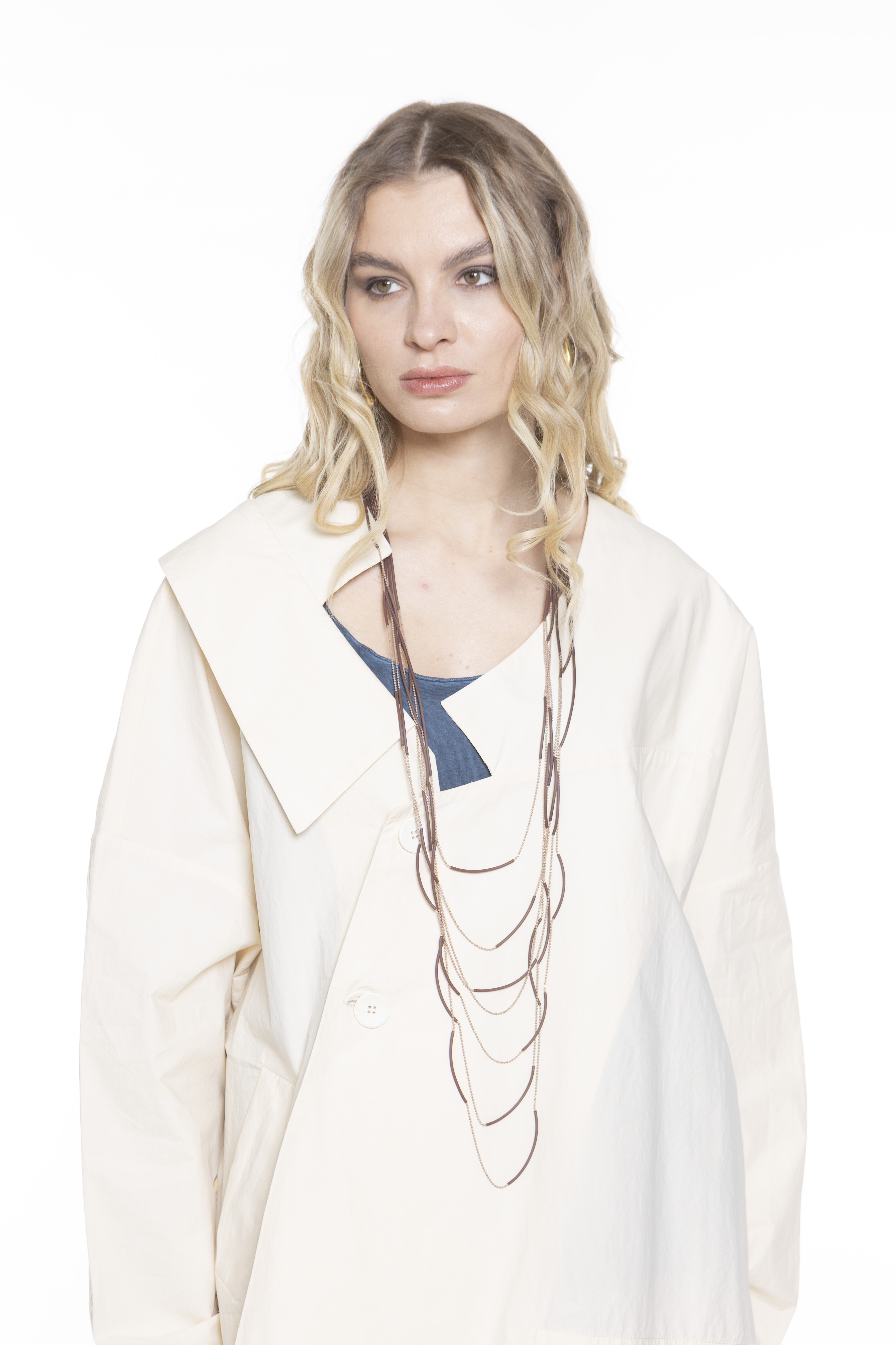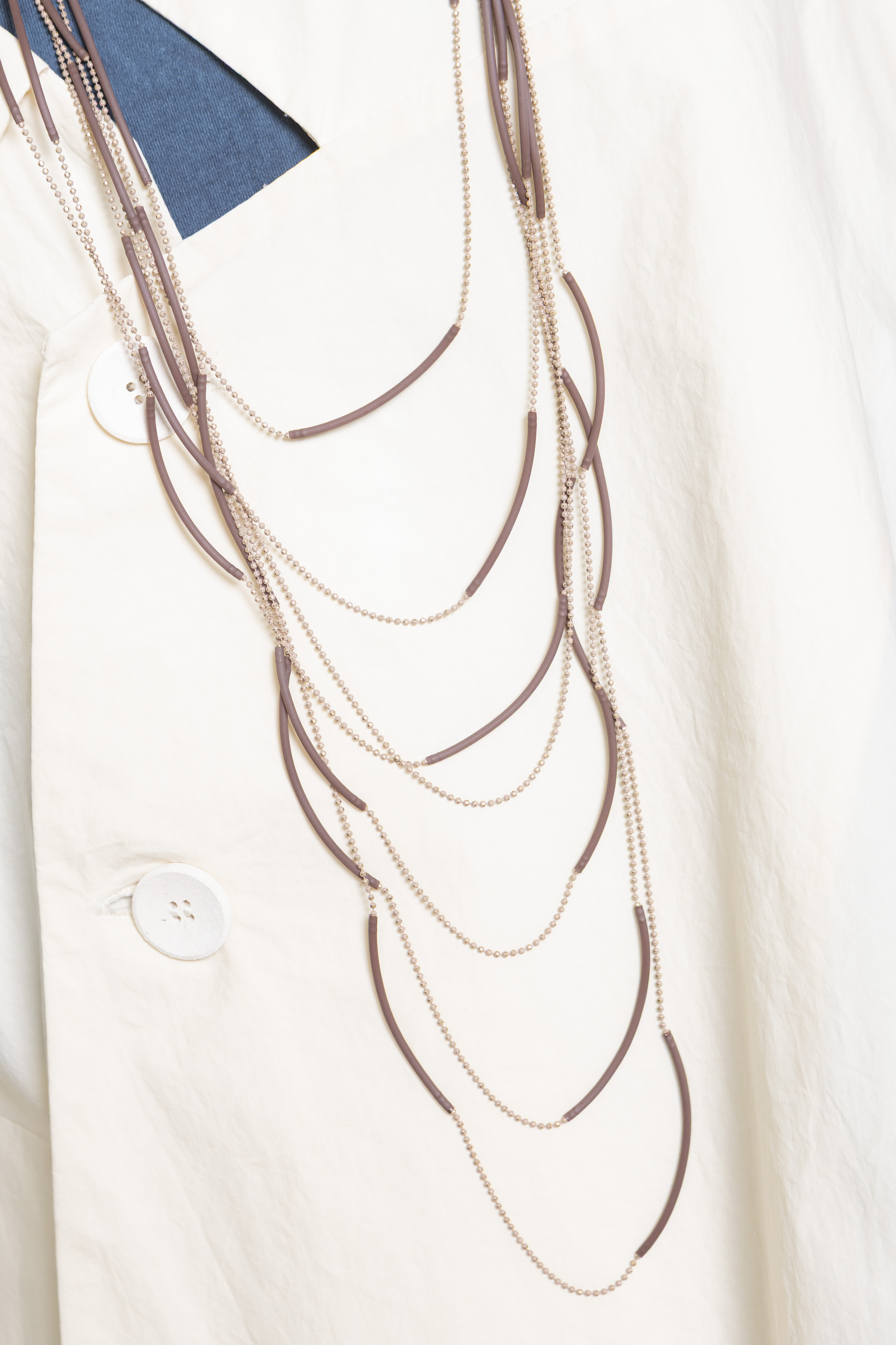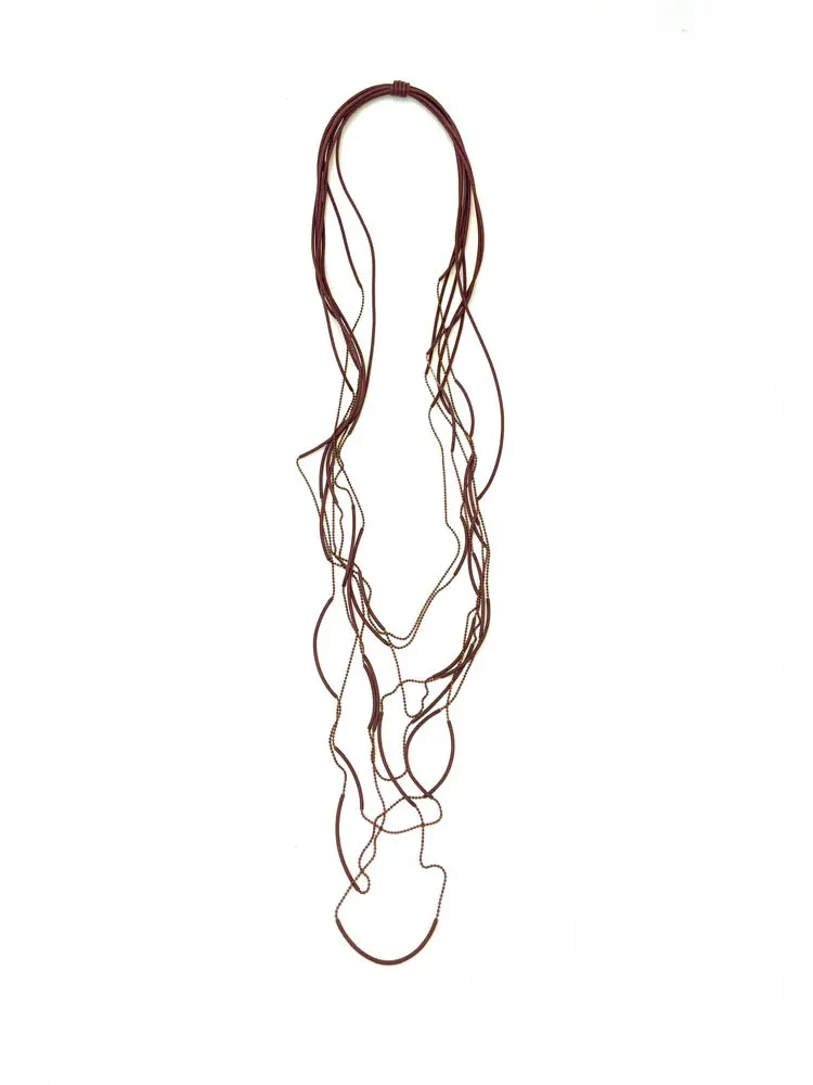 Колье из каучука и ювелирного сплава в коричневом цвете, длина 125 см