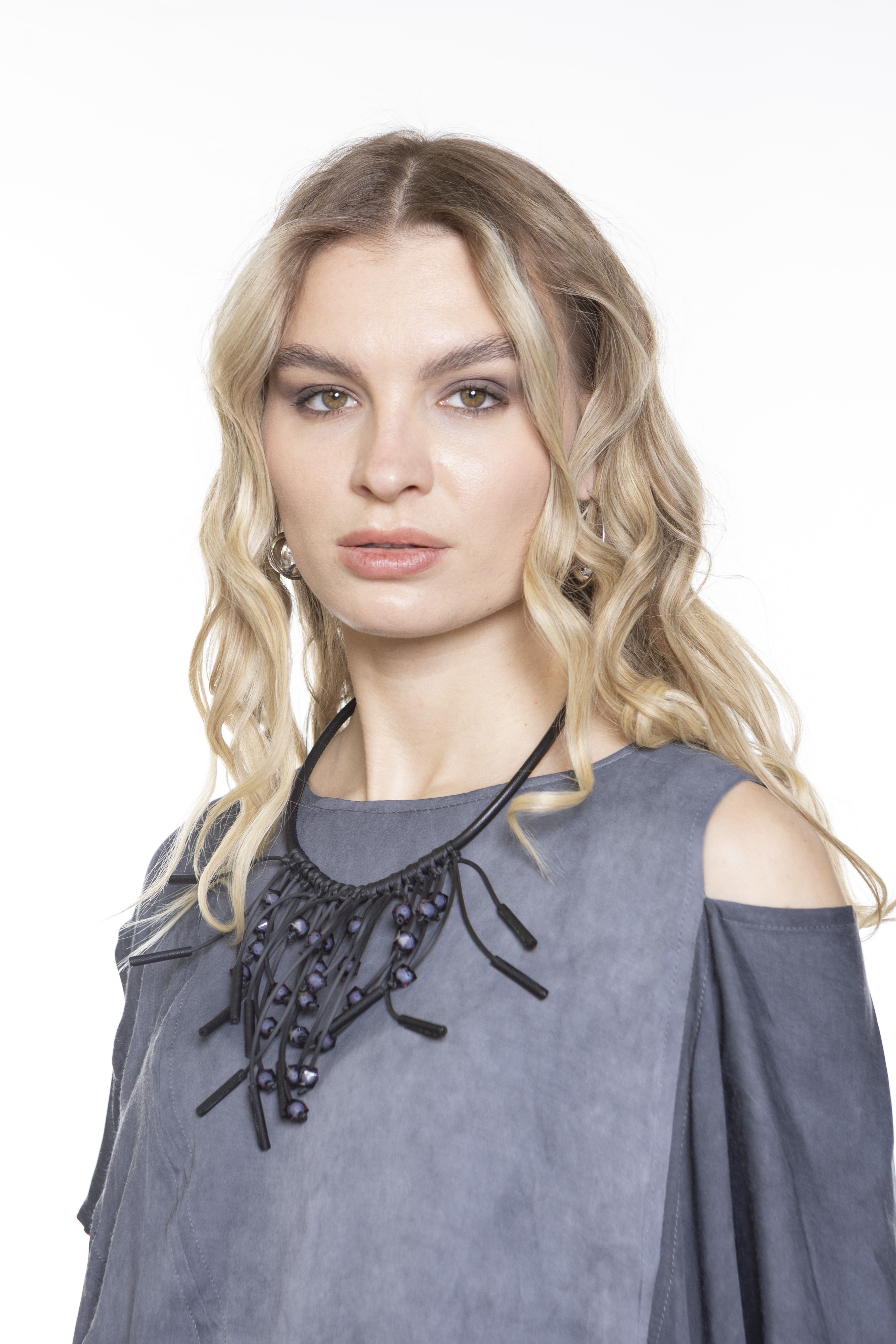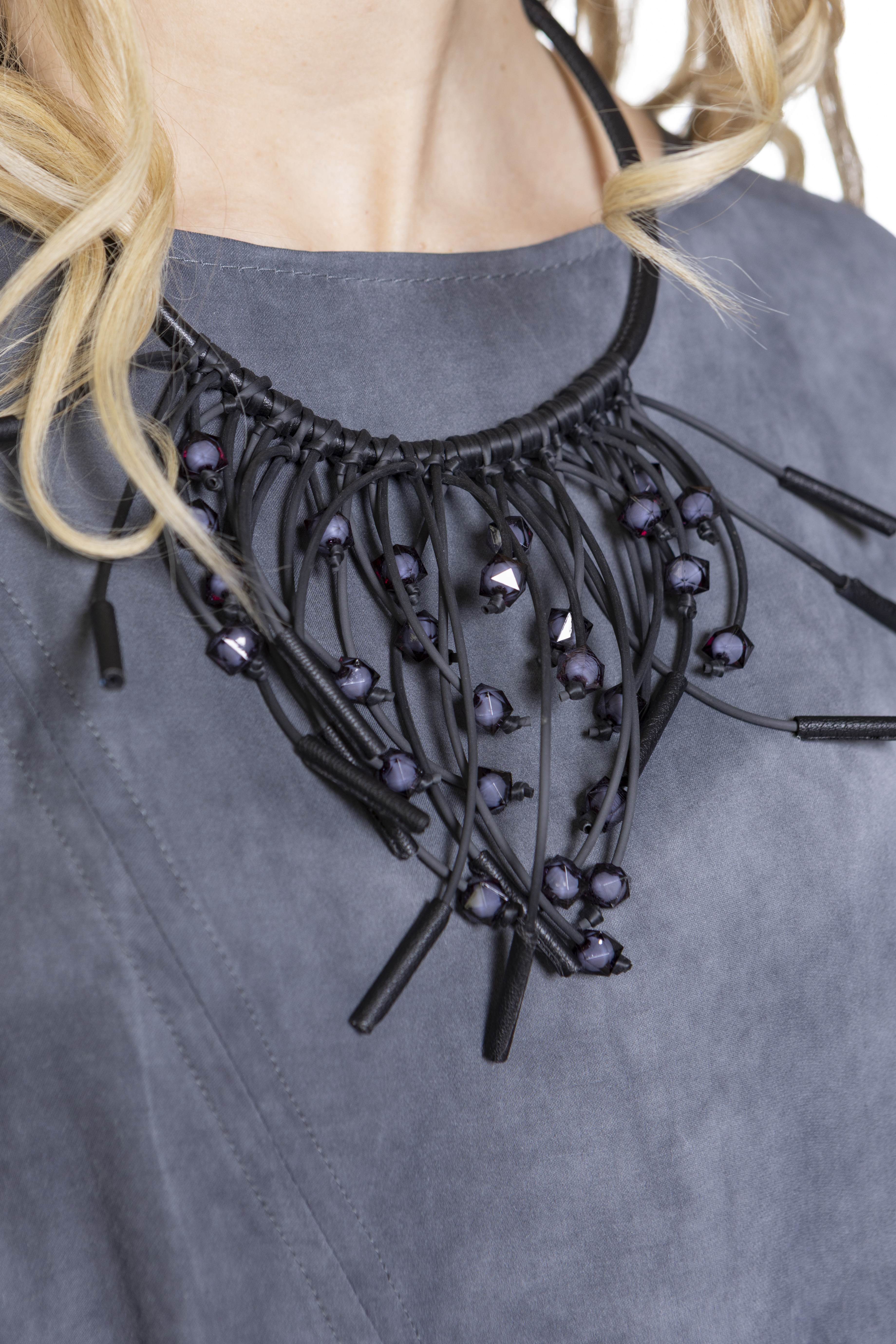 Колье из каучука, ювелирной смолы и натуральной кожи, длина - 50 см