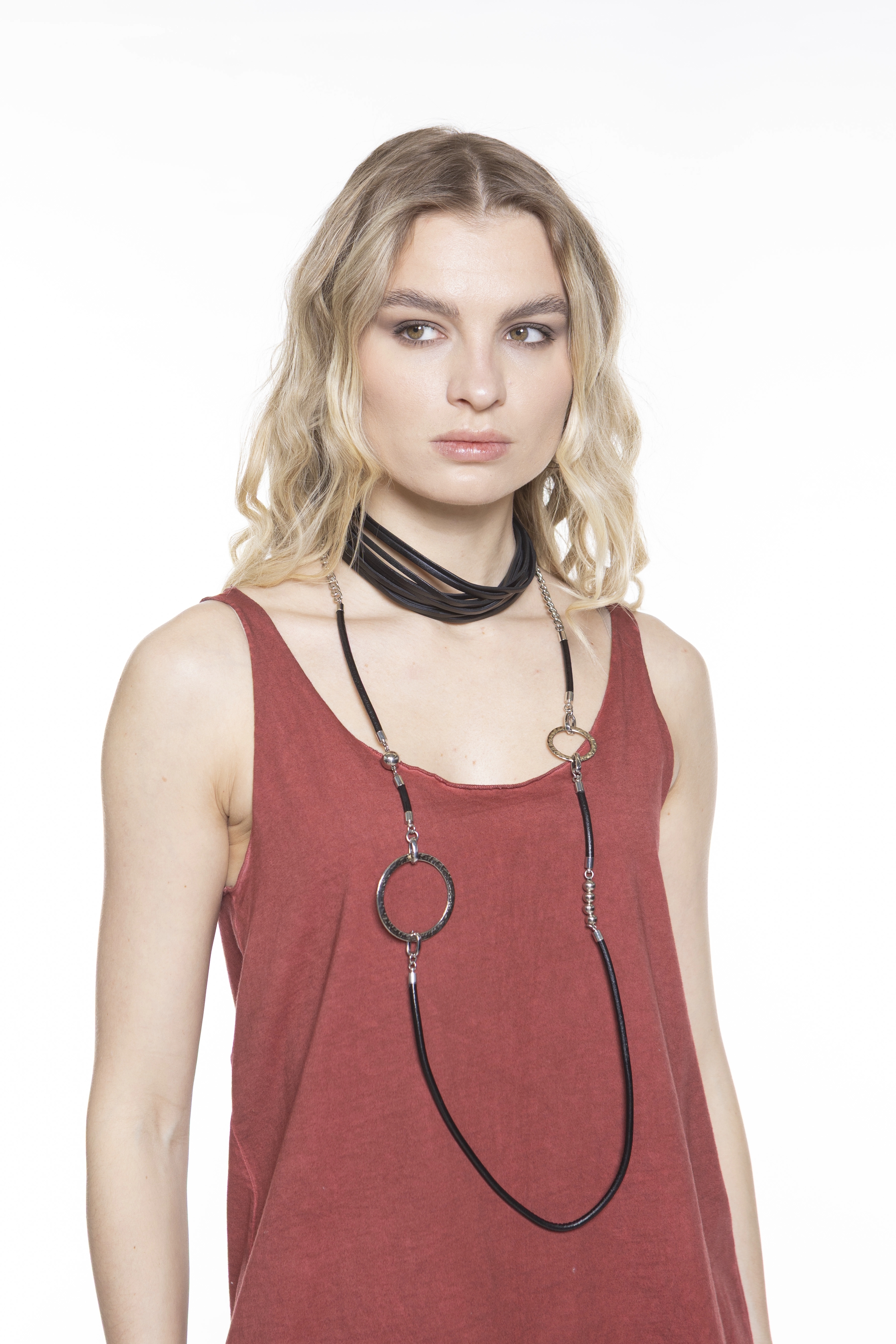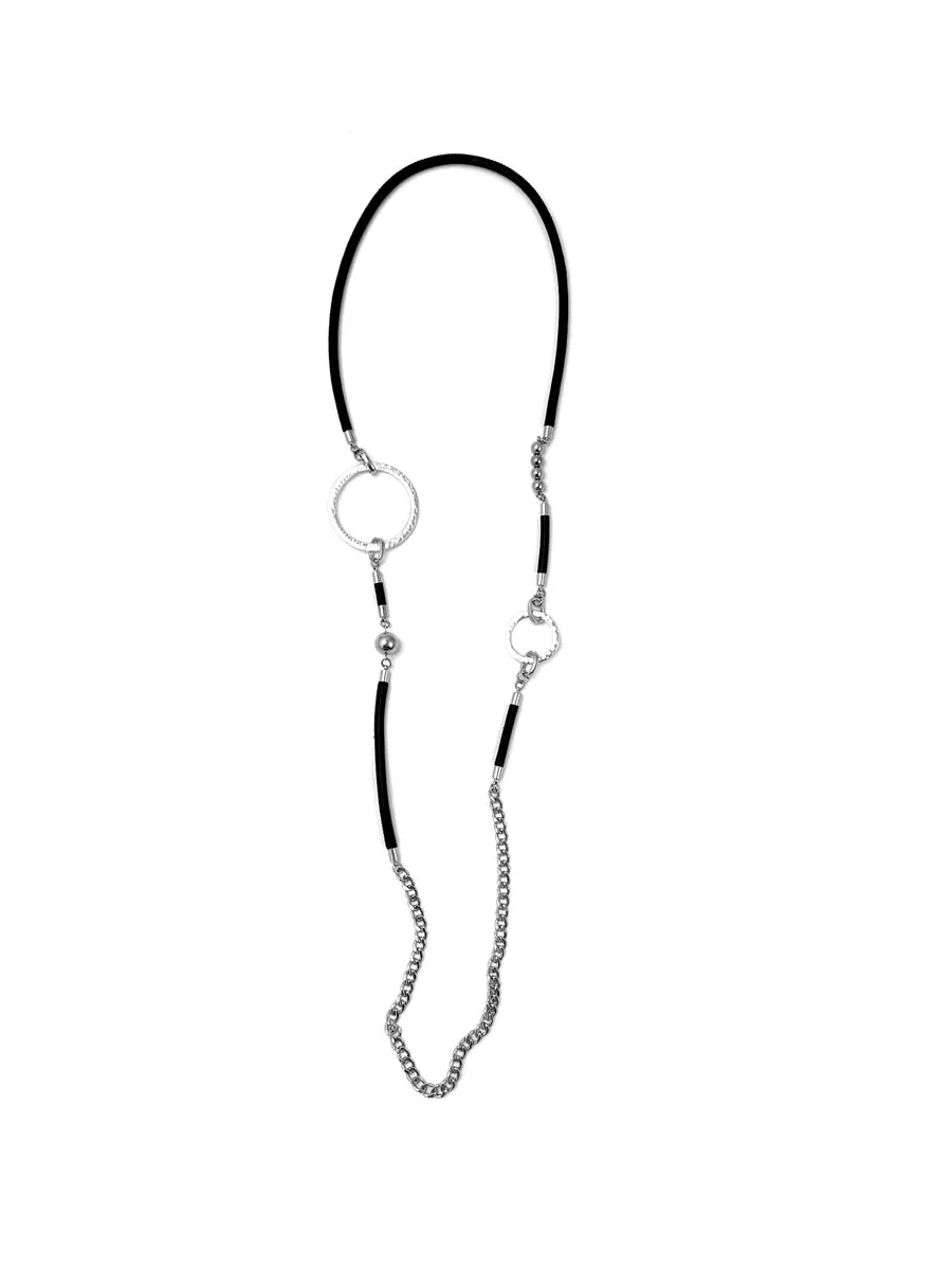 Колье из натуральной кожи и ювелирного сплава, длина изделия 120 см