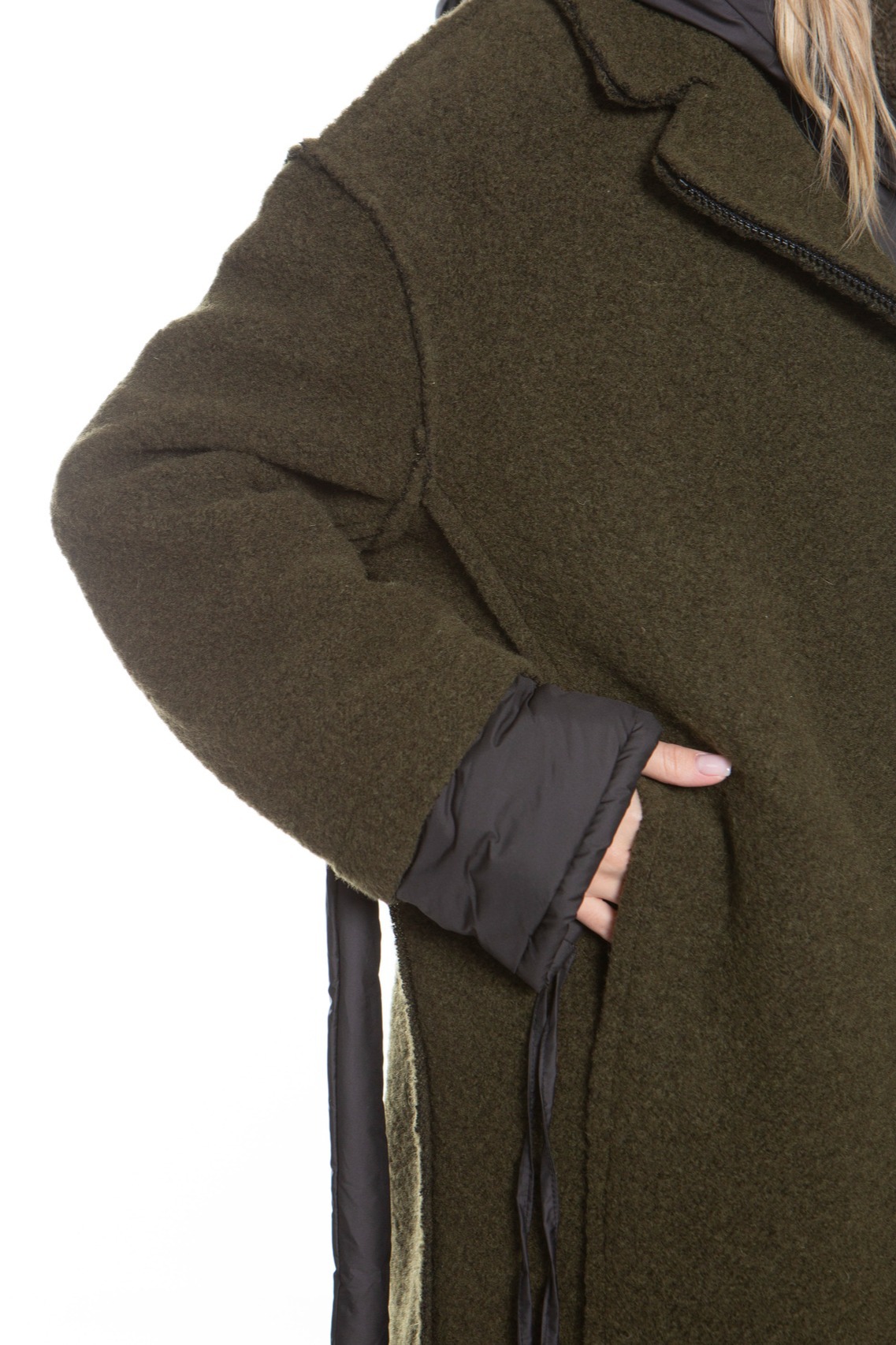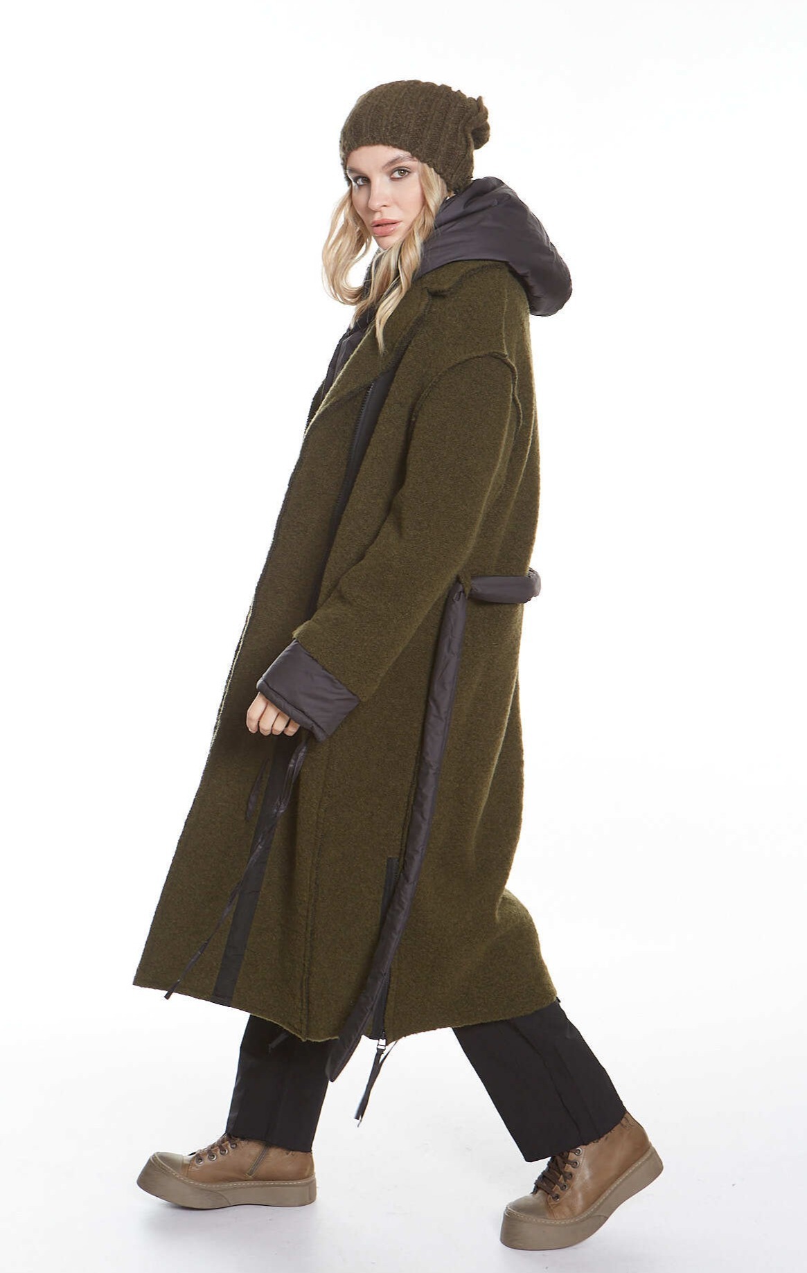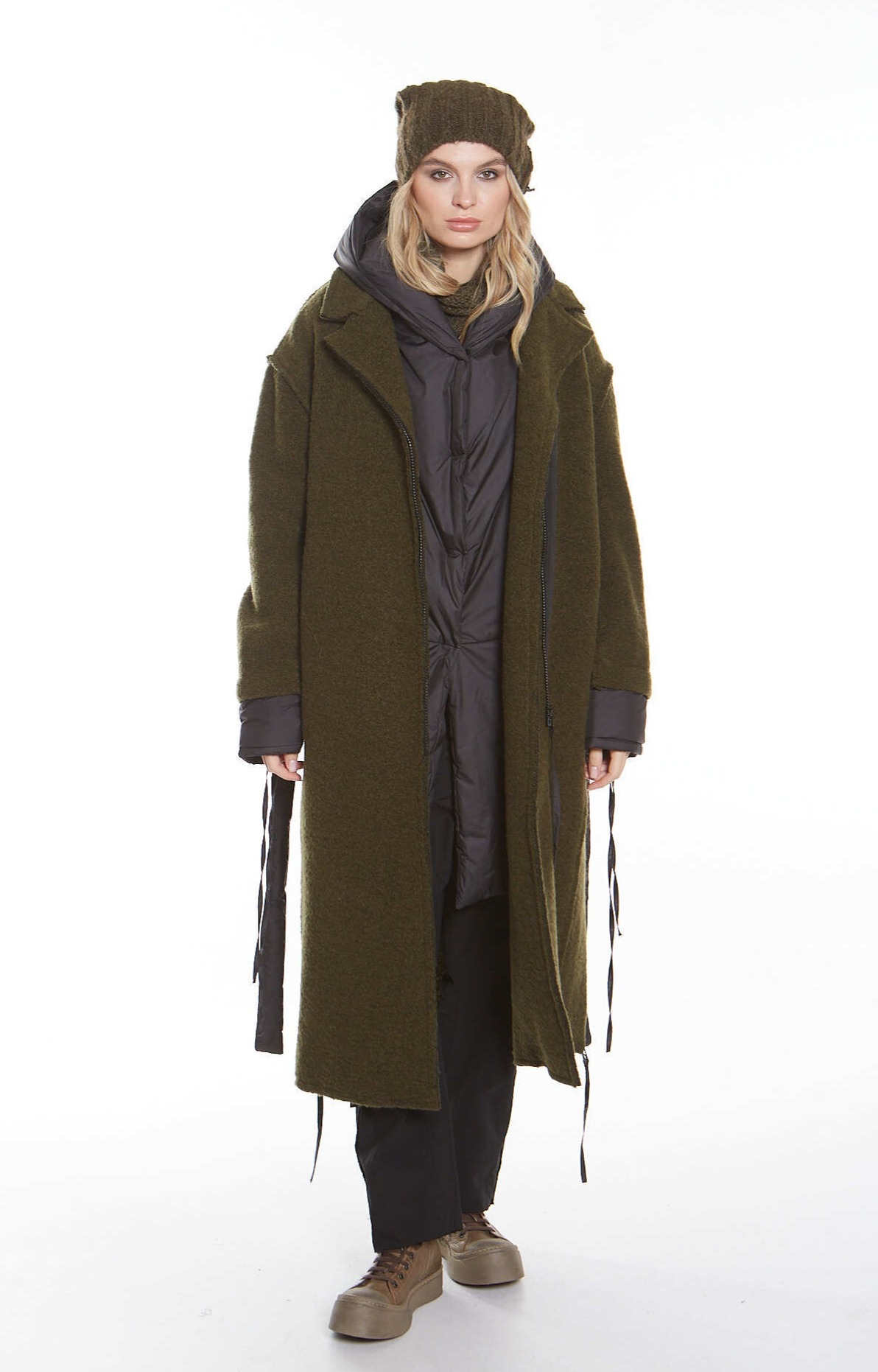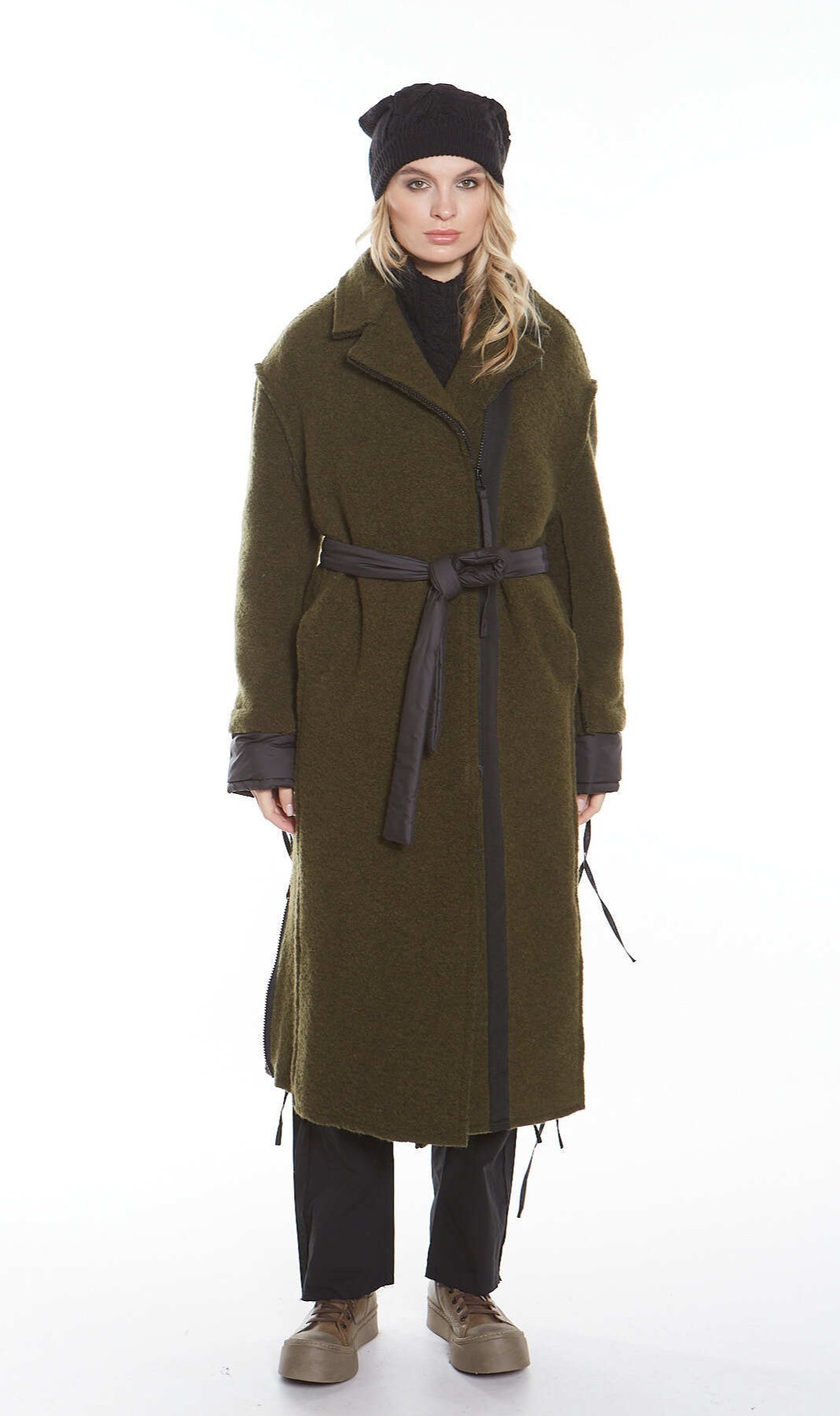 Стильное пальто из плотной шерстяной ткани от Studio b3, идеально подходящее для создания современного образа. У пальто черная застежка-молния по всей длине. Мягкие манжеты и съемный пояс из черной нейлоновой ткани обеспечивают комфорт и вариативность в носке, а завязки на манжетах позволяют регулировать их объем. По бокам расположены две черные декоративные молнии, добавляющие уникальности. Необработанные края придают пальто актуальный и слегка дерзкий вид, подчеркивающий оригинальность каждой детали.