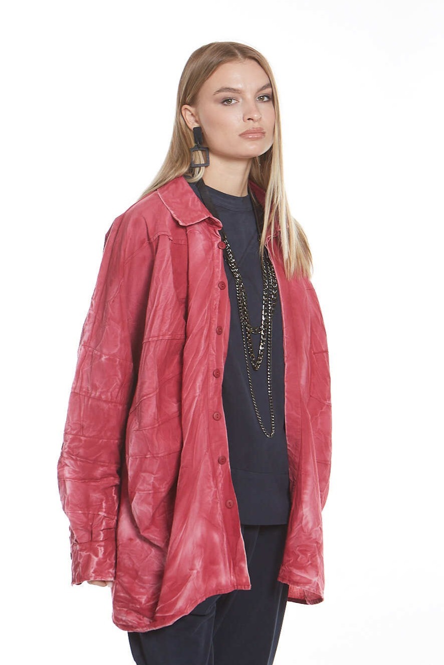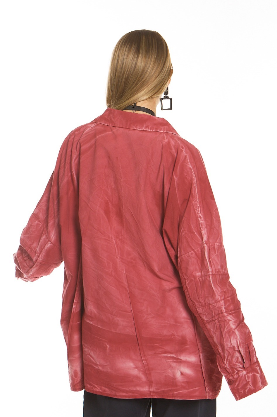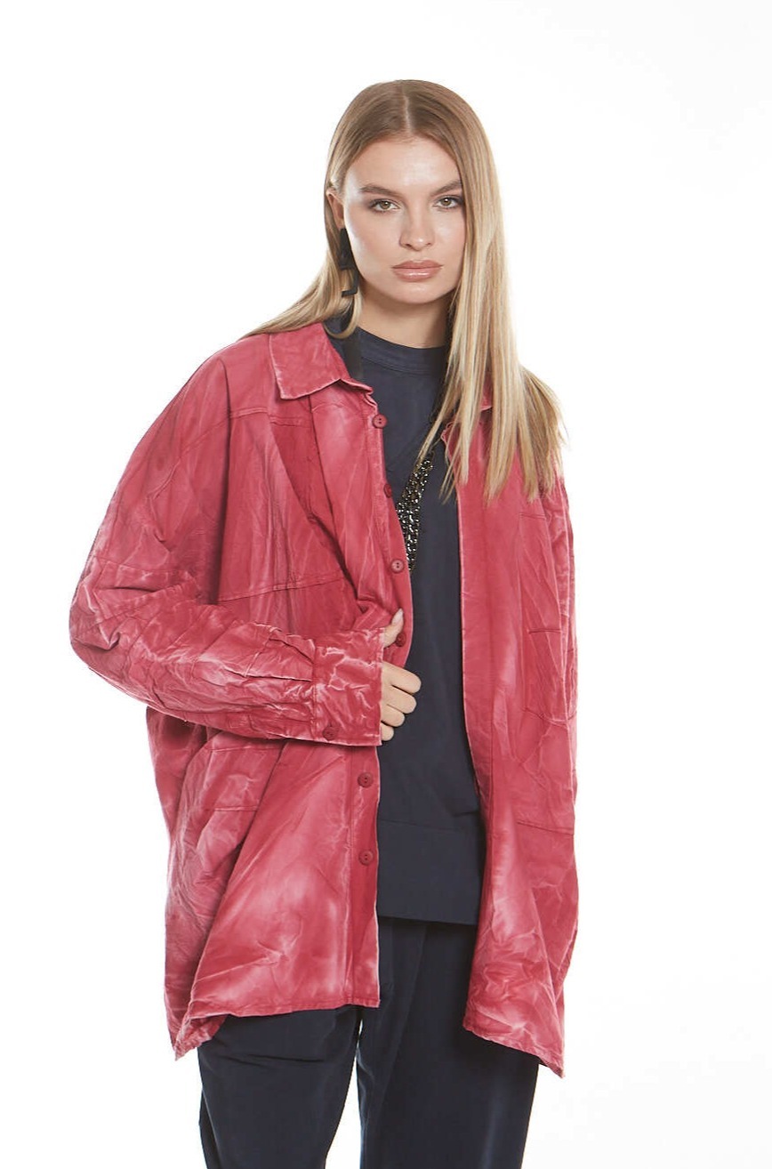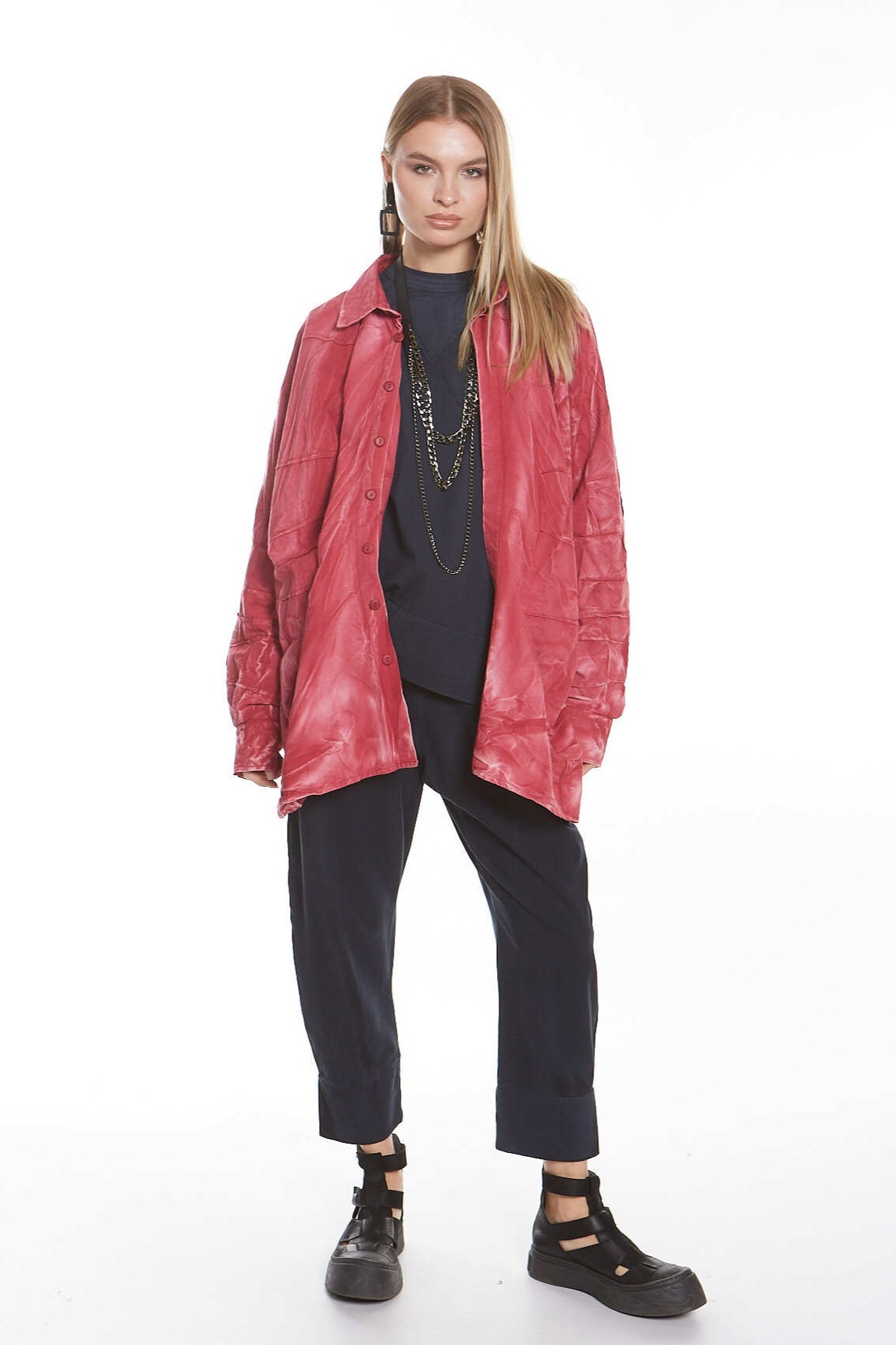 Рубашка свободного кроя с воротником-стойкой, выполнена из хлопкового поплина, с декоративными защипами и сборками спереди.