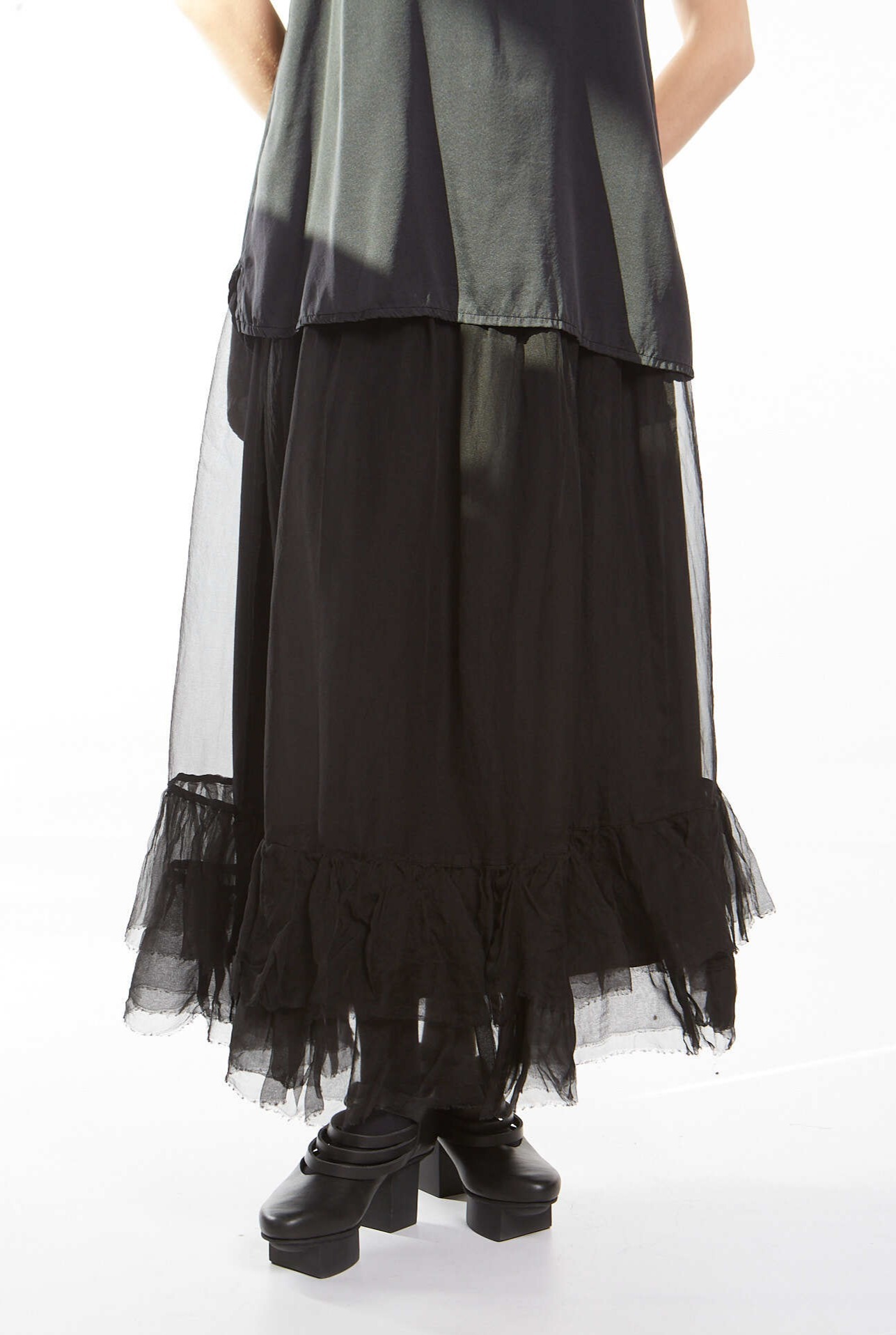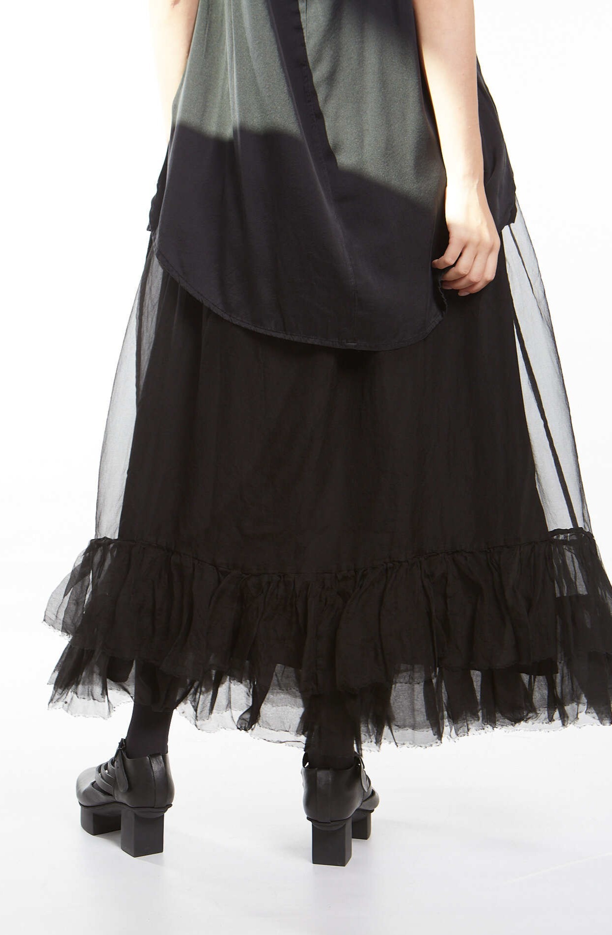 Шелковая накидка с бархатным рисунков ввиде кругов, воланы по краю изделия, длинный рукав, завязка на груди.